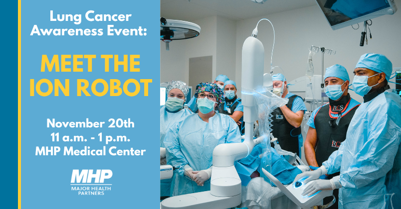 This educational and interactive event will highlight the importance of early detection and offer attendees a unique opportunity to see MHP’s new ION Robot up close. The ION Robot is used by MHP pulmonologist Dr. Naga Sirikonda to perform robotically assisted bronchoscopies, enabling enhanced access to and visualization of the lung airways for the biopsy of suspicious nodules. Early detection of lung cancer is critical, and through the combined use of advanced robotic technology and low-dose CT screenings, we can identify cancer at an earlier, more treatable stage.